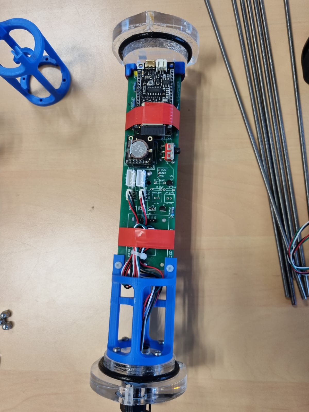 <table><thead><tr><th width="108.33331298828125">Quantité</th><th>Matériel</th></tr></thead><tbody><tr><td>0,25</td><td><a href="https://connexion-pression.com/tubes-rigides-pvc-pression/63-915-tube-d-63-pn16-pvc-pression.html#/13-taille_de_la_decoupe-decoupe_1_metre">Tube PVC PN16, Ø ext. 63mm, épais. 4,7mm (découpe d'un mètre)</a></td></tr><tr><td>0,25</td><td><a href="https://plaqueplastique.fr/product/plaque-plexiglass-xt-10mm-transparent/">Plaque plexiglass épais. 10mm transparent, L. 50cm x H. 30cm</a></td></tr><tr><td>3</td><td><a href="https://www.vis-express.fr/ecrou-borgne-inox-a4-din-1587-vs0100/37773-2559648-ecrou-borgne-m4-inox-a4.html#/267-conditionnement-200_pieces">Écrou borgne M4, inox A4 316</a></td></tr><tr><td>3</td><td><a href="https://fr.rs-online.com/web/p/ecrous-a-oreilles/2484315?gb=s">Écrou à oreilles M4, inox A4 316</a></td></tr><tr><td>1</td><td><a href="https://www.vis-express.fr/tige-filetee-longueur-1-metre-inox-a4-din-975vs3347vs0104/21608-tige-filetee-m4-longueur-1-metre-inox-a4.html">Tige filetée M4 x L. 1m, inox A4 316</a></td></tr><tr><td>4</td><td><a href="https://fr.rs-online.com/web/p/serre-cables/0233487?gb=a%20ou%20https://www.vis-express.fr/colliers-de-serrage-couleur-nylon/392369-2500286-collier-de-serrage-marron-48x290-nylon.html#/266-conditionnement-100_pieces">Colliers de serrage nylon 4,8mm x 300mm</a></td></tr><tr><td>1</td><td><a href="https://eu.store.bambulab.com/fr/products/petg-hf?id=49068714754396">Filament 3D PETG 1kg noir 1,75 mm</a></td></tr><tr><td>2</td><td><a href="http://fr.rs-online.com/web/p/joints-et-joints-toriques/1965129">Joint torique, Ø int. 52mm, Ø ext. 60mm, épais. 4mm</a></td></tr><tr><td>0,1</td><td><a href="https://fr.rs-online.com/web/p/graisses/0494124">Graisse silicone pour joints toriques</a></td></tr><tr><td>1</td><td><a href="http://syera.fr/boutique/gb/diametre-37-48-mm/195-penetrateur-wetlink-m10-4p5mm-lc.html">Pénétrateur WETLINK M10 4.5mm LC</a></td></tr><tr><td>1</td><td><a href="http://syera.fr/boutique/gb/accessoires/273-interrupteur-etanche-m10-5a.html">Interrupteur étanche M10 5A (SWITCH-M10-5A-R1)</a></td></tr></tbody></table>
